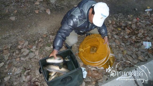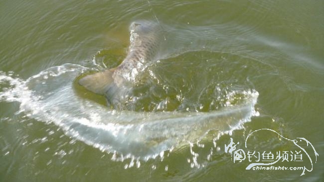 早晨9点多钟到达,在连续抛竿诱鱼一个多小时后开始有口。上面的照片是第二尾鱼,先前有一尾遛进抄网后又被它逃脱,因为黑风钓竿太软,三节的战斗抄网都很难够着鱼。当鱼遛到边时,其实人早已经退到离岸很远的地方。没办法,只能电话王哥前来帮忙。