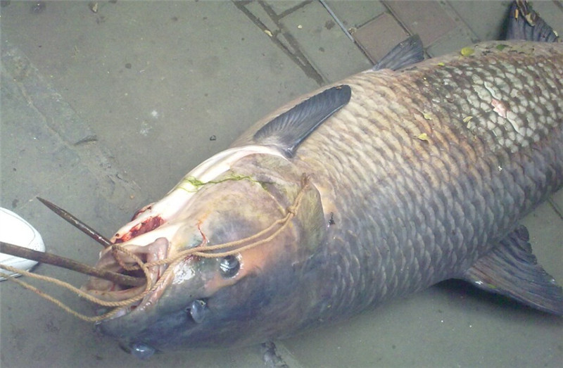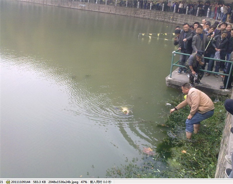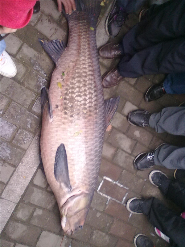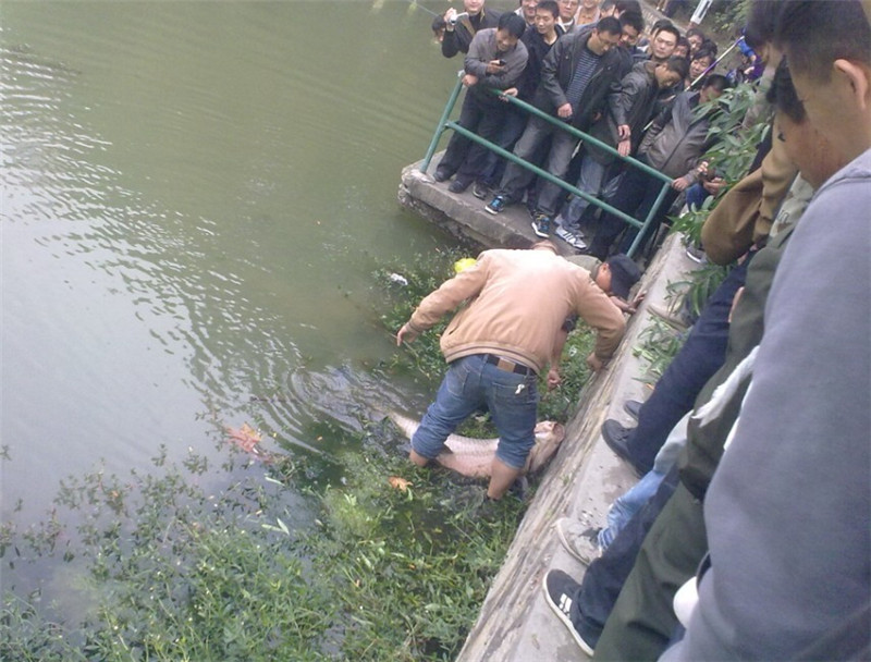 刚刚经过大塘公园,只见小街子对面好多人围观,兴致勃勃上前一看,我滴孩来,当时我就震惊喽。 我靠,比我小学的时候在大塘公园看见的那条还大。 记者号称全长一米五三 九十三斤 一共钓了3个多小时。