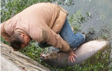 记者号称全长一米五三 九十三斤 一共钓了3个多小时。