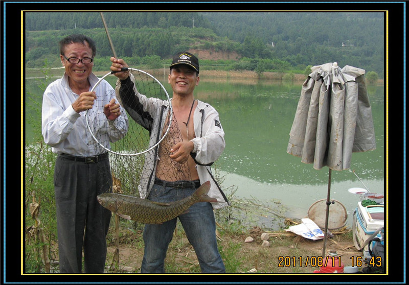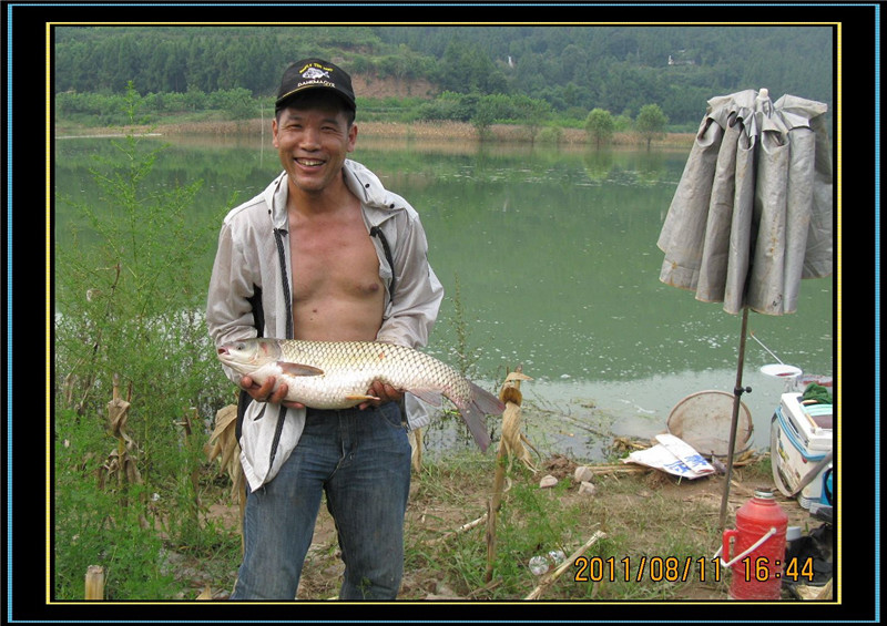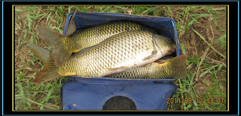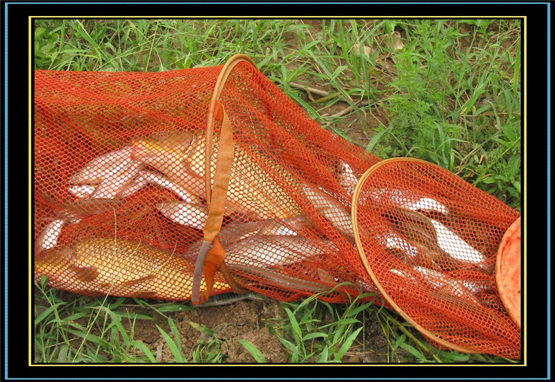 我钓获大鲤6条,6-7斤的3条,3-5斤的3条 ,钓获大草1条近8斤。我老挑钓获大鲤2条,大的6斤多,小的3斤。我和老挑钓的9条大鱼接近50斤。另外我和老挑钓的红尾和白条60多斤,共计2人渔获百斤以上。