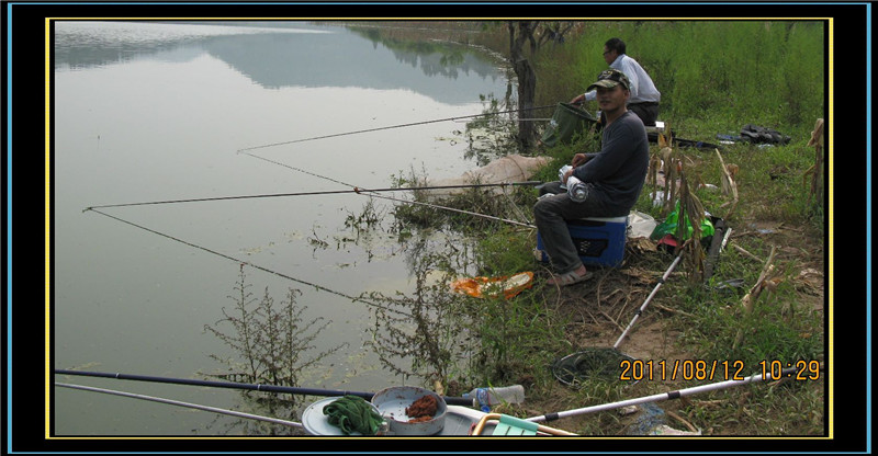 7月26日,我带着备好的前打杆和大线组,再次一行三人来到升钟湖。由于前打杆的质量出了问题,杆尖上其中的一个导线环伤线严重,无法使用。加上我们所钓河段正在打渔,鱼不怎么开口,渔获不多。每人仅仅钓获红尾,白条20-30多斤。大鱼我只钓了一条近2斤的小鲤鱼。实在遗憾,这次“复仇”升钟失败了。
