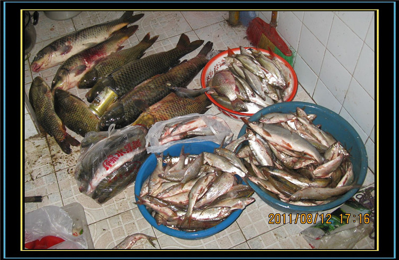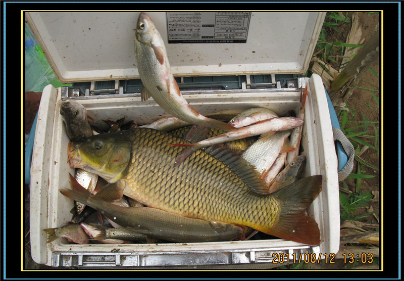 这次跑的大鱼比钓获的多,钓获鲤鱼5条,大的近5斤,小的也有3斤,还掉了一条红眼棒(一种优质草鱼)另外还有一些红尾和白条,总共大概有40-50斤吧。