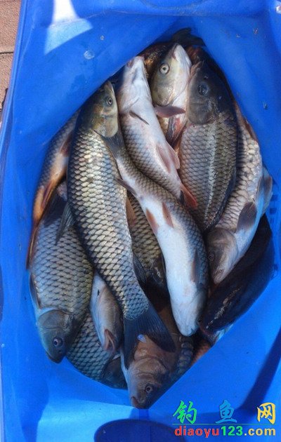 到了第三个钓点开始换杆,时间已经过了12点了,先用的是棒子的细流峰14尺,还是1.0主0.5子0.3钩漂是酷鱼的凯空心尾底钓专用,水深不足1米,抛了也就是五六杆后,疯狂开始了,连中三条2+鲤鱼后,一个沉稳的顿口,提杆,不动,以为是挂底了,再一用力,鱼向外一窜,秒切,气死我了,换子线再来,黑漂,提杆再切,这次两个钩子都给带跑了,什么鱼都没看见,奶奶的,换子线再来,这次换的0.8子线0.5新关东钩子,抛的第二杆,悲剧发生了,顿口提杆,杆子一弯而后直接起来了,空了。定睛一看,主线断了,妈呀,在看水里浮漂又上来一下,然后斜斜的就沉下去,被鱼拉走了啊,都没来及反应,我的漂啊,350大元啊.化悲痛为力量,果断换杆,这次该给迅19开光了,不敢大意,直接上主1.5子0.8钩0.5关东,接下来就是一个令人疲惫的提杆、抄鱼、抛竿的过程了,到3:40结束,渔获总数量62尾,其中有3两以上鲫鱼九尾,其余全是2左右及以上鲤鱼和草鱼,最大的5左右,放生10+不足斤的鲤、草。